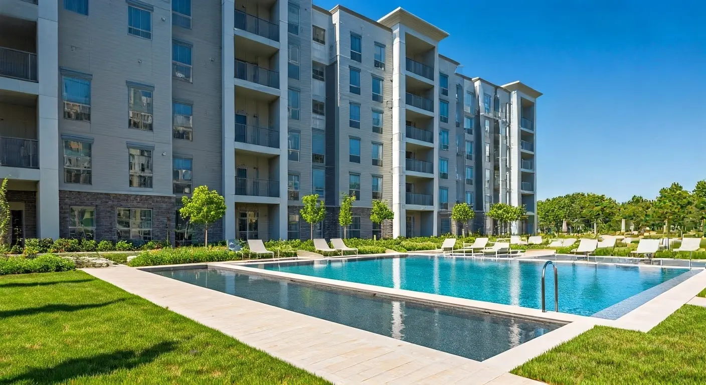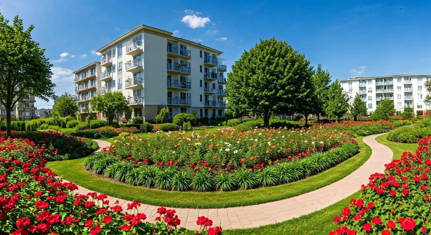 Contemporary apartments with lush gardens.